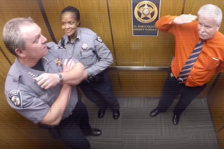 The elevator doors slide open and both Tony and Officer Reed froze to the spot. Their supervisor, the chief deputy officer, stepped into the elevator. Because the two didn’t want to look unprofessional, they decided to stop dancing. So different from the party the two just had!